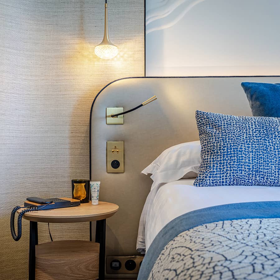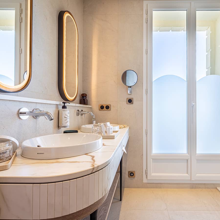 With a window overlooking the sea, a king-size bed and a bath, every detail has been thought of to offer you an incomparable stay in a subtle and delicate setting.